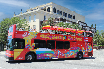 Hop-On the City Sightseeing tour to experience 300 Years of New Orleans history, culture & fun! Unlimited Hop-On Hop-Off sightseeing provides an experience like no other in New Orleans. Buses visit each stop Every 30 Minutes, to allow visitors the best use of their time. The 1hr 30min Tour visits the French Quarter, Garden District, plus New Orleans best attractions like The National World War II Museum, Mardi Gras World, Jackson Square, Arts District, and Magazine Street Shopping Districts.